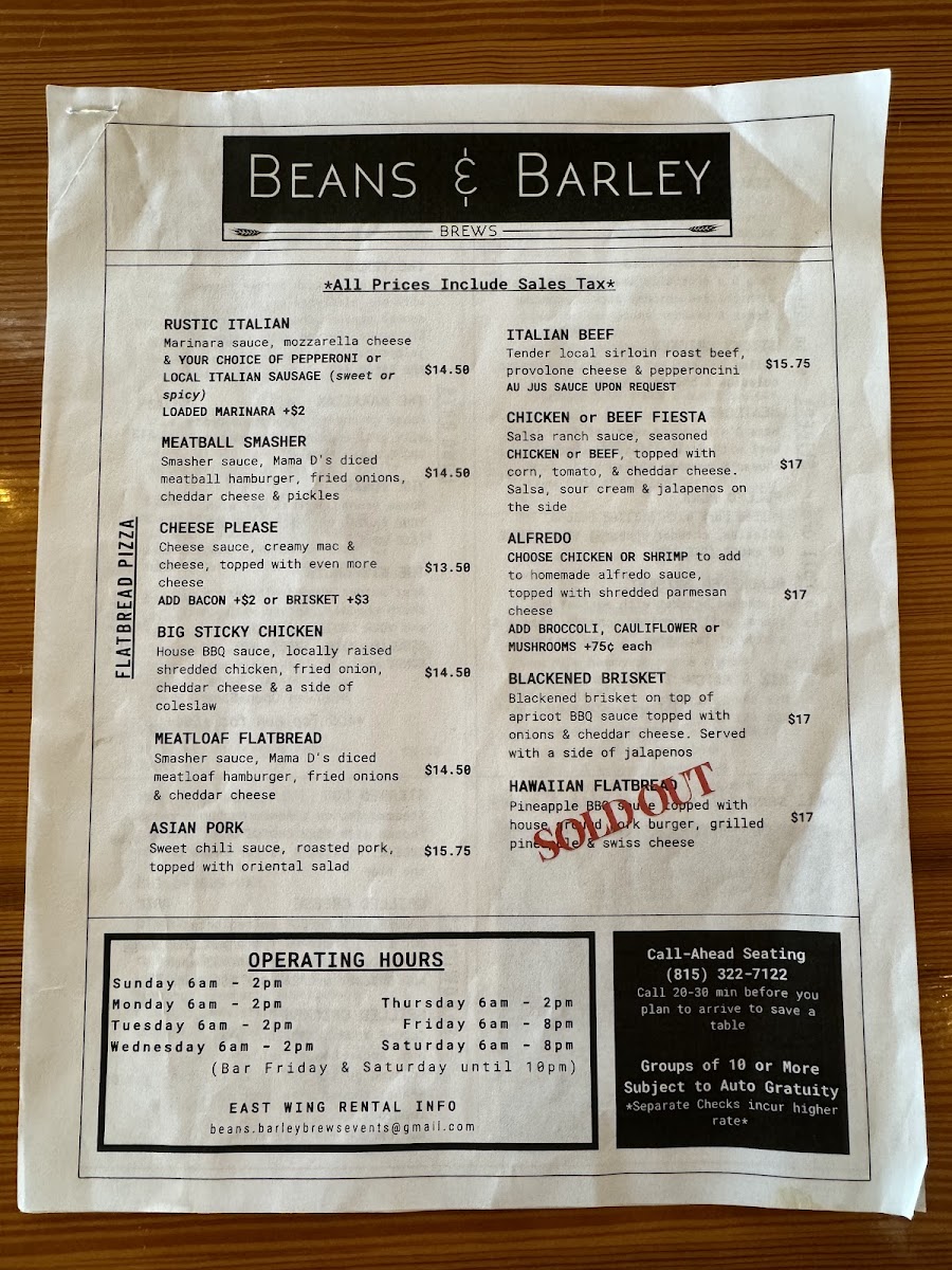 Welcome to Beans & Barley Brews, a delightful culinary gem nestled at 852 E IL-116, Ashkum, IL. This charming establishment invites all food lovers and beverage enthusiasts to explore a diverse menu that promises to tantalize your taste buds and uplift your spirits.